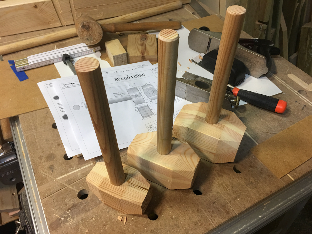 Mange institutioner har installeret en Kindling Cracker ved bål pladsen og børnene er vilde med at kløve træ. Men for de mindste børn kan en mukkeret på 1 kg. godt være en udfordring at håndtere. Så efter inspiration fra en skovbørnehave pædagogerne have snittet en træhammer er vi i gang med at få en sat etableret en produktion af træhamre.