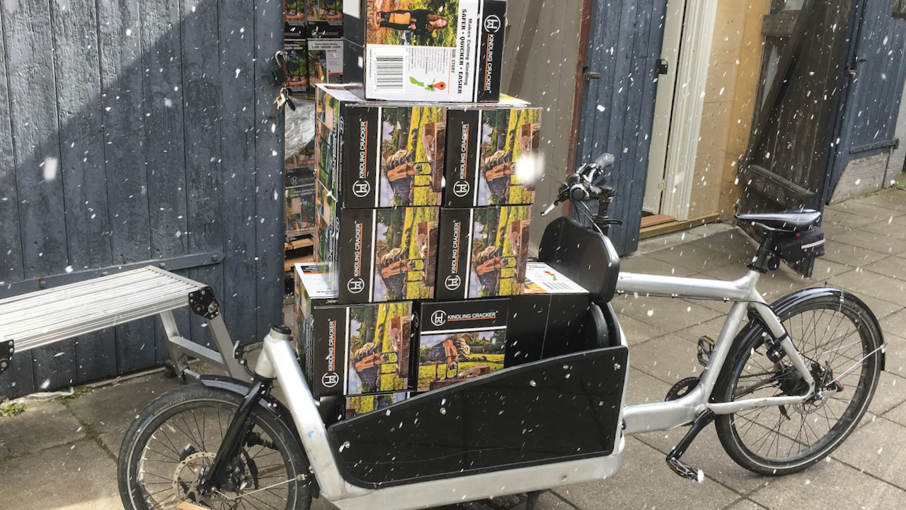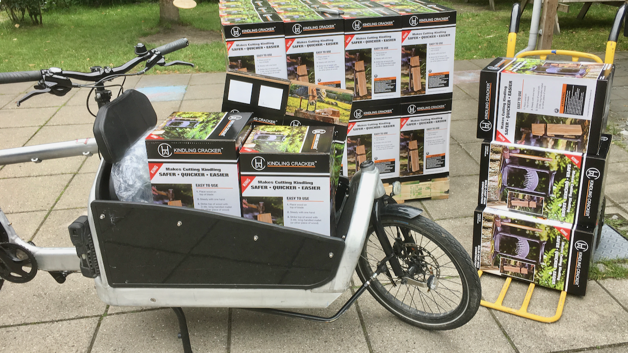 Alt i alt er de første +500 brændekløvere blevet transporteret gennem københavn på min elskede bullitt fra lager til kontor til pakkeshop. Når vejret er godt og der har været bestillinger inden for en radius af ca. 20 km. har jeg nydt at cykle dem ud til kunderne med deres brændekløver det er en fantastisk måde at få lidt motion og møde kunderne - det bliver næsten ikke bedre.